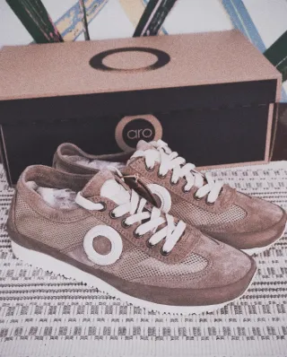 Auténticas zapatillas Aro Joaneta, perfectas para la primavera. Su diseño combina tonos beige y marrón para un estilo casual. - Cierre con cordones. - Detalle de malla transpirable. - Suela de goma. - Logo de Aro en la lengüeta y lateral.