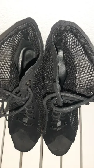 Botines de baile con un diseño moderno y transpirable. - Material exterior de malla. - Cierre con cordones. - Diseño tipo botín alto. - Suela de gamuza.
