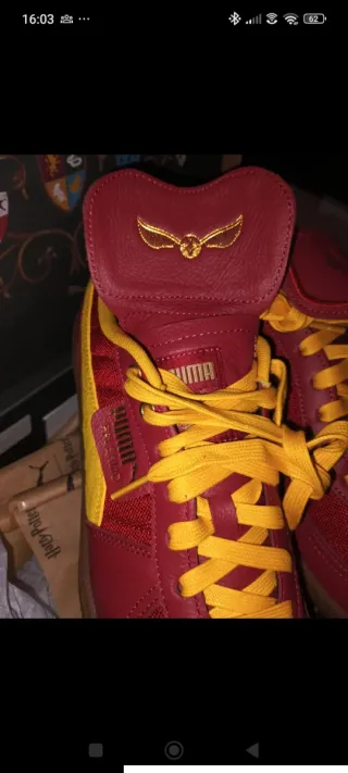 Zapatillas Puma Palermo edición especial Harry Potter. Un diseño único que combina los colores de la casa Gryffindor. - Parte superior de cuero y malla. - Cordones amarillos. - Suela de goma. - Detalle del logo de Puma en la lengüeta que se puede quitar
