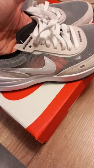 Zapatillas deportivas Nike en talla 37.5. Combinan tonos grises y blancos para un look moderno. - Diseño con malla transpirable transparente. - Detalles en ante. - Suela de goma.