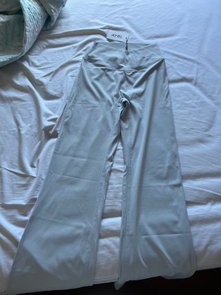 Vendo Mallas deportivas de la marca AYBL en color azul hielo. Las vendo totalmente nuevas sin estrenar, solo el uso de probarlas, con la etiqueta y todo porque le queda pequeña a mi pareja. Debido a que me cobran unos gastos de envio al extranjero para devolverlo , me sale mas rentable venderlo asi. Es una marca muy reconocida y es un diseño moderno y cómodo, de calidad. En las fotos se ve la malla en la pagina web con el precio, cuesta 45€ + 6€ de envio. Las dejo a 40€ - Cintura alta. - Pierna acampanada.