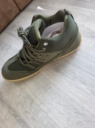 Botas Saguaro de color verde oliva, con un diseño moderno y funcional. - Material exterior de malla transpirable. - Cierre con cordones. - Suela flexible y duradera.