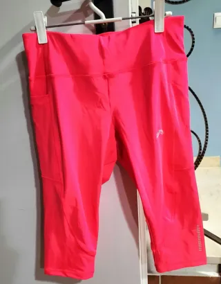 Mallas deportivas de corte capri para mujer. - Tejido técnico elástico. - Cintura alta. - Bolsillo lateral. - Detalles reflectantes en el bajo. Color fucsia Acrílico Bolsillo lateral para el móvil Cintura ajustable Tipo pirata Contorno de cintura 82 cm Largo 69 cm