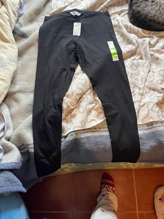 Mallas deportivas gruesas color negro de mujer, la etiqueta poner L-XL pero equivale a una 38-40. Usadas pero bien conservadas.