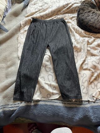 Mallas con un diseño que imita el tejido vaquero. - Cintura con botón. - Bolsillos delanteros simulados. - Costuras decorativas.