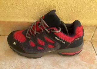 Zapatillas deportivas Quechua en color negro y rojo. Perfectas para senderismo o actividades al aire libre. - Diseño con paneles de malla transpirable. - Suela con buen agarre. - Cierre de cordones.