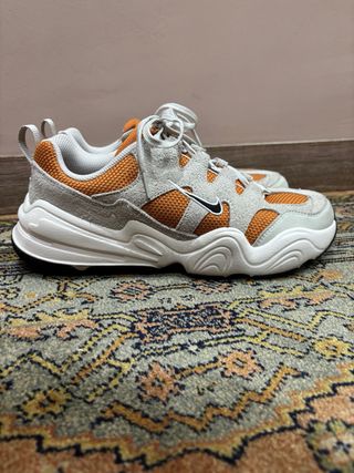 Vendo un par de zapatillas Nike Tech Hera en tonos grises y naranjas. Están en muy buen estado, apenas usadas. - Diseño clásico de Nike. - Combinación de gamuza y malla. - Suela gruesa y cómoda. NO TENGO LA CAJA ORIGINAL PERO SON ORIGINALES.