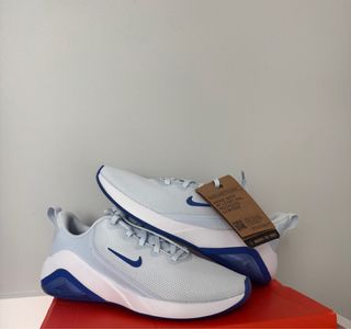 Son talla 45 pero creo que tallan corto. Yo uso una 43-44 en otras marcas. Estas me quedan bien pero no la uso porque hace ya año y medio que me cambie a Barefoot. están en perfecto estado ya que solo tienen una salida. Y un par de veces por la oficina. Fueron un regalo en la pandemia de la marca de videoconferencias Zoom (que curiosamente coincide con el modelo de la zapatilla), con sus colores corporativos, con motivo de un acuerdo cerrado con Nike. No hay dos iguales en España. Especial para coleccionistas - Parte superior de malla transpirable. - Suela con tecnología Zoom Air para amortiguación. - Detalles en color azul