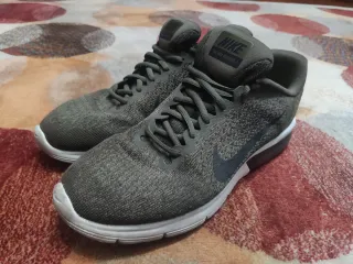 Zapatillas deportivas Nike en color gris. Diseño moderno y cómodo. - Parte superior de malla transpirable. - Suela de goma para mayor tracción. - Cierre con cordones. En buen estado se usaron en su día pero se conservan bien