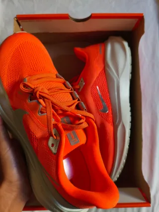 Zapatillas deportivas Nike Pegasus 41 en talla 38 Nuevas y originales. - Diseño moderno con detalles en naranja y azul. - Parte superior de malla transpirable. - Suela Zoom para mayor amortiguación.