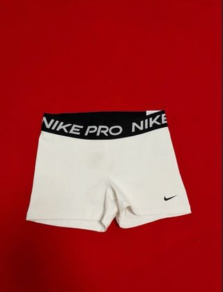 Shorts deportivos Nike Pro en color blanco, talla M. Perfectos para entrenamientos. - Cintura elástica con logo. - Tejido cómodo y transpirable.