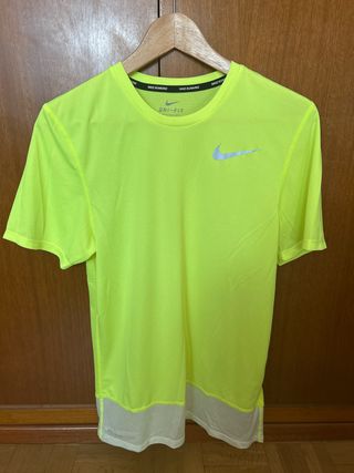 Camiseta técnica de Nike Running en llamativo color amarillo neón con detalles en blanco. - Tejido transpirable Dri-FIT. - Logo de Nike reflectante. - Paneles de malla para ventilación.