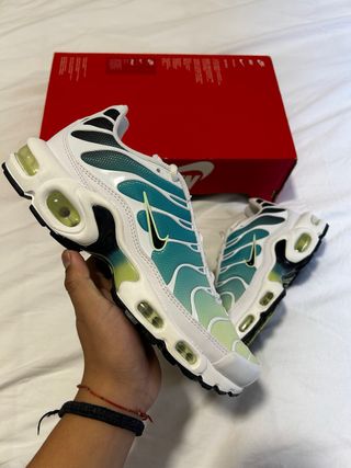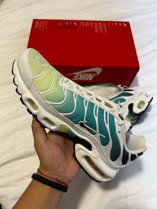 Zapatillas Nike Air Max Plus con un diseño degradado en tonos verdes y turquesas. caja sin tapa - Parte superior de malla transpirable. - Unidad Air Max visible en la mediasuela. - Suela de goma para mayor tracción. Precio negociable✅