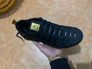 Zapatillas Nike Air Vapormax Plus en color negro con detalles dorados. - Diseño moderno y llamativo. - Suela con cámaras de aire visibles. - Parte superior de malla transpirable. - Envío gratis!!! - Dispone de ticket, caja y factura!!! El Corte Inglés! - Negociable, seriedad!!!