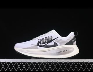 Zapatillas de running Nike Air Zoom en blanco y gris. Diseñadas para ofrecer comodidad y rendimiento. - Parte superior de malla transpirable. - Detalle de Swoosh y logo RUN en negro. - Suela con tecnología ZoomX.