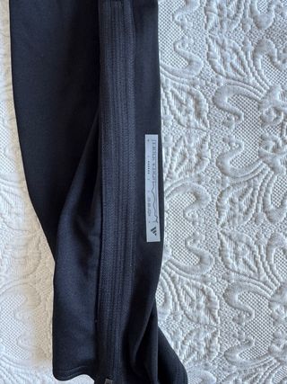 Mallas deportivas Adidas originales, ideales para running y entrenamientos. Tejido técnico AEROREADY, transpirable y de secado rápido. Color negro con detalles en rojo. Incluyen bolsillo trasero y ajuste cómodo que no se mueve al correr. En muy buen estado, sin rotos ni desgastes. Talla S (36 aprox.). Perfectas para correr, gimnasio o entrenar al aire libre.