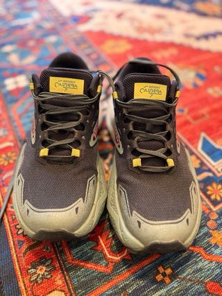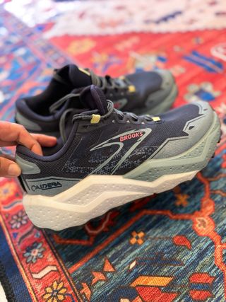 Zapatillas de trail running Brooks Caldera 7 en color azul marino y gris. Diseñadas para ofrecer comodidad y rendimiento en terrenos irregulares. - Parte superior de malla transpirable. - Entresuela con amortiguación. - Suela exterior con buen agarre.