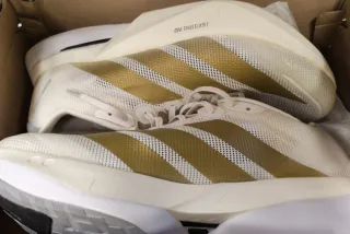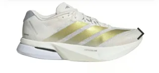 Zapatillas de running Adidas Adizero Boston 10 en color blanco y detalles dorados. Diseñadas para ofrecer una experiencia de carrera optimizada. - Parte superior de malla transpirable. - Amortiguación Lightstrike Pro. - Detalles de las 3 bandas icónicas de Adidas.