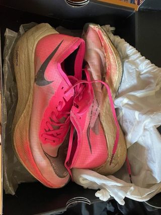Zapatillas de running Nike Vaporfly en llamativos tonos rojos y verdes. Diseñadas para ofrecer un rendimiento óptimo. - Parte superior de malla transpirable. - Suela con amortiguación reactiva. - Detalle de swoosh icónico.