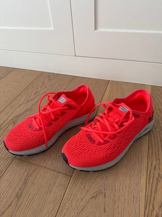 Zapatillas de running Under Armour con un diseño moderno y dinámico. - Parte superior de malla transpirable. - Detalle de degradado en naranja y negro. - Logo de Under Armour en el lateral. Se venden porque me son pequeñas