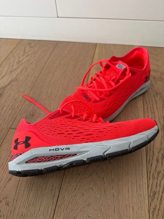 Zapatillas deportivas Under Armour Hovr Sonic en llamativo color rosa y detalles grises. Diseñadas para ofrecer comodidad y rendimiento. - Parte superior de malla transpirable. - Suela con amortiguación Hovr. - Cierre de cordones. Literal tiene un par de usos. En excelente estado