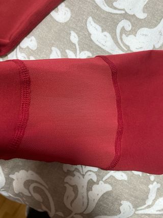 Mallas deportivas para mujer - Diseño en color rojo. - Talla S (equivalente a 36/8). - Tejido con paneles de malla para mayor transpirabilidad. - Cintura elástica con cordón ajustable. - bolsillo lateral para movil. Trasero con cremallera y pequeño parte delantera