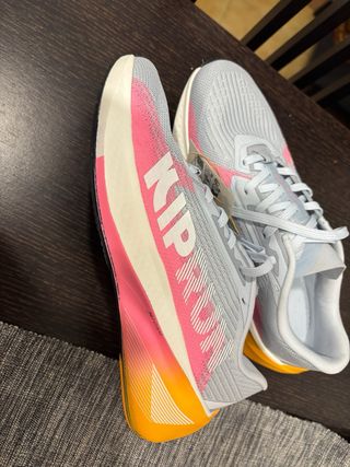 Zapatillas deportivas Kalenji, ideales para running. - Diseño en malla transpirable. - Detalles en color salmón . - Suela blanca con detalles en naranja. Usadas 3 veces!