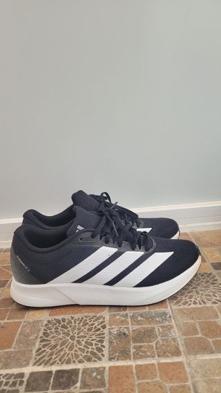 Zapatillas de running Adidas Duramo RC 2 en color negro con detalles blancos. Diseño moderno y ligero. - Parte superior de malla transpirable. - Suela con tecnología Lightmotion para amortiguación. - Cierre de cordones. - Detalle de las tres bandas Adidas en los laterales.