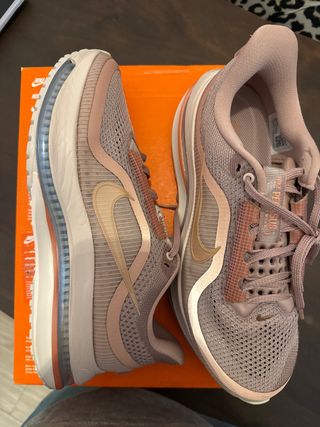 Zapatillas deportivas Nike Pegasus Premium en tonos rosados y dorados. - Diseño moderno y elegante. - Detalles en color oro. - Combinación de malla y materiales sintéticos.