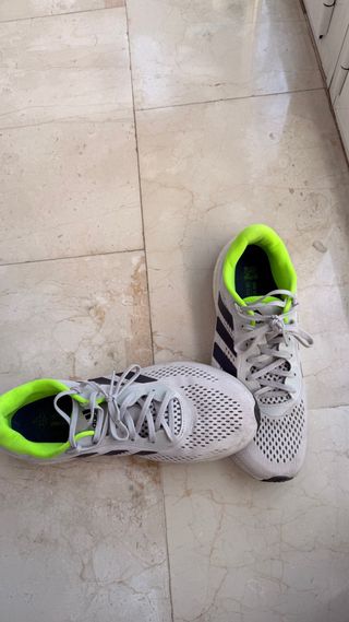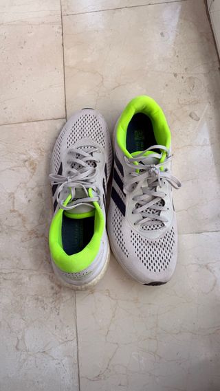 Zapatillas deportivas Adidas en color blanco con detalles en verde neón. - Diseño transpirable con malla. - Cordones grises/blancos Zapatillas supernova Talla 45 1/3 Pocas veces usadas
