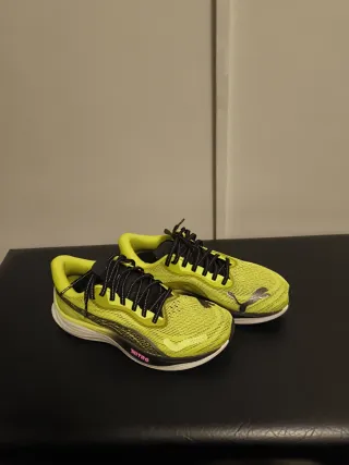 Zapatillas deportivas Puma Nitro, ideales para running. Su diseño combina colores vibrantes para un estilo único. - Parte superior de malla transpirable. - Suela con tecnología Nitro para amortiguación. - Cierre de cordones. - Detalle de logo Puma. 25cm medida de talón a punta