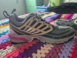 Zapatillas Hoka para hombre en color negro y azul. Diseñadas para ofrecer comodidad y rendimiento. Pocas veces puestas Como nuevas - Parte superior de malla transpirable. - Suela gruesa con amortiguación. - Cierre de cordones.