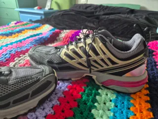Zapatillas Salomon ACS Pro Advanced en color Black Alloy y Feather Grey. Diseño moderno y cómodo. - Parte superior de malla transpirable. - Sistema de lazada rápida. - Suela de goma para mayor tracción. - Detalle de refuerzos laterales. En un estado bastante bueno, usadas menos de 10 veces por ser un número grande, la talla es la 44 2/3 Precio en tienda 190€