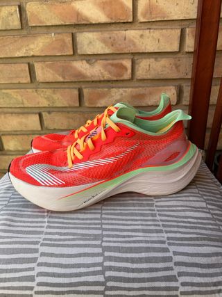 Zapatillas de running Asics Novablast 5.. Diseñadas para ofrecer una experiencia de carrera dinámica y cómoda. Como nuevas, tienen 20 kms. Tallan algo más grande , perfectamente valen para un pie 43 Malla jaquard en empeine muy transpirable y cómoda. Mediasuela FF Blast max para una amortiguación reactiva y amortiguada. Zapatillas que sirven tanto para entrenamientos diarios como días de carrera o series y fartlecks. Una de las zapatillas mejor valoradas del mercado.