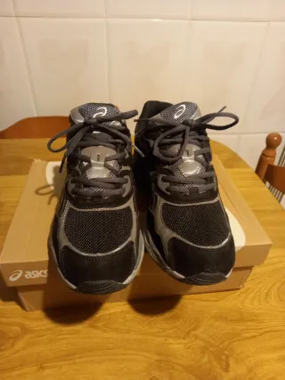 Zapatillas deportivas Asics para hombre. Llevadas una vez - Diseño moderno en negro y gris. - Cierre con cordones para un ajuste seguro. - Parte superior de malla transpirable.