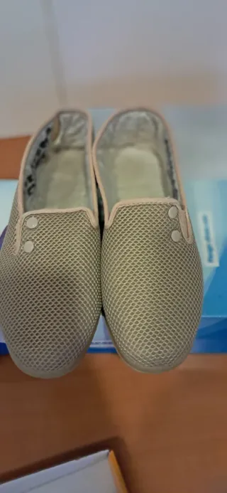 Zapatillas de estilo casual, muy cómodas y fáciles de poner. - Diseño sin cordones. - Material exterior de malla transpirable. - Detalle de dos botones decorativos en el empeine. - Ribete en contraste alrededor de la apertura.