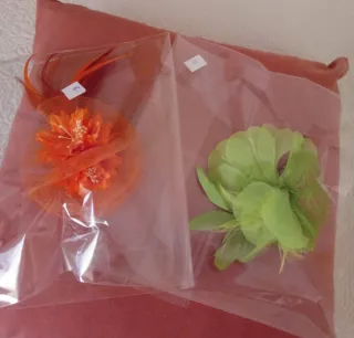2 Elegantes tocados de fiesta con diseño floral. A ESTRENAR - Tocado de malla naranja con plumas y detalles de cuentas. - Tocado de tela verde con pétalos y acabado texturizado. Se entrega en persona Visita mi página para ver otras ofertas