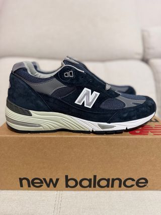 Zapatillas New Balance 991 fabricadas en Inglaterra. Combinan ante y malla para un look clásico. - Diseño en tonos azul marino y gris. - Detalle del logo 'N' plateado en los laterales. - Suela de goma para mayor durabilidad.
