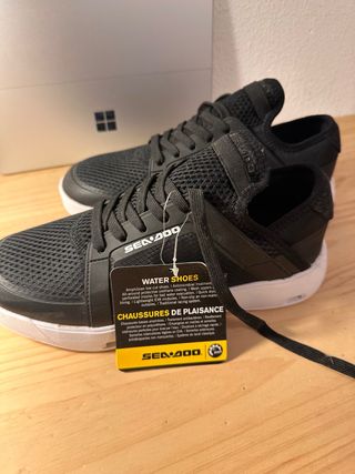 Zapatillas de agua Sea-Doo, ideales para actividades acuáticas. - Diseño de corte bajo. - Tratamiento antimicrobiano. - Revestimiento protector de uretano. - Parte superior de malla. - Plantillas perforadas para evacuación rápida del agua. - Forro de secado rápido. - Mediasuelas de EVA ligeras. - Suelas antideslizantes y que no marcan.