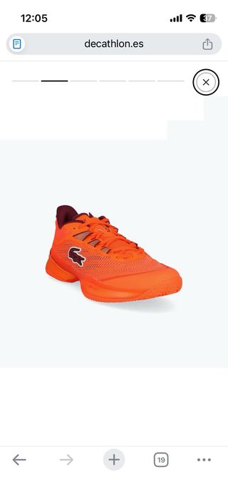Zapatilla deportiva de la marca Lacoste en llamativo color naranja. Diseñada para ofrecer comodidad y estilo. - Logo de Lacoste en el lateral. - Detalle en color burdeos en el talón y cuello. - Malla transpirable en la parte superior.