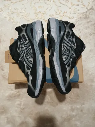 Zapatillas deportivas Asics Gel NYC en tonos negro y gris. Diseño moderno y cómodo. - Parte superior de malla transpirable. - Detalle de logo en la lengüeta y la plantilla. - Suela de goma para mayor tracción.