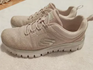 Zapatillas deportivas Skechers con un diseño moderno y detalles brillantes. - Parte superior de malla transpirable. - Cierre con cordones elásticos. - Detalle de purpurina sutil. - Suela flexible y ligera.