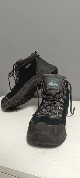 Botas de senderismo Skechers Trego-Alpine Trail en color negro y gris. Diseñadas para ofrecer comodidad y protección en tus aventuras al aire libre. - Parte superior de ante y malla. - Cierre de cordones. - Suela de goma duradera.