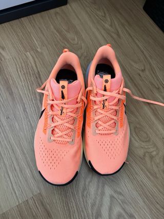 Zapatillas de running Nike en tonos rosa y naranja. Diseñadas para ofrecer comodidad y rendimiento. - Parte superior de malla transpirable. - Suela con amortiguación. - Cierre de cordones. Se venden porque se regalaron sin tíquet regalo y no las pude cambiar