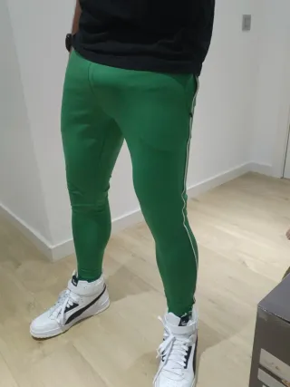 Chándal deportivo Asos verde en perfecto estado como nuevo. - Casi tan pegado como mallas - Diseño con raya lateral blanca. - Ideal para ir de calle gym, o atletismo. - Tejido cómodo para actividades deportivas con un poco de brillo tipo licra.
