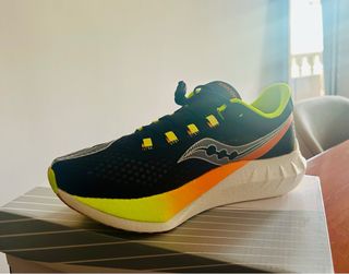 Zapatillas deportivas Saucony Endorphin Pro 4. - Diseño en negro con detalles en naranja y amarillo neón. - Parte superior de malla transpirable. - Suela con amortiguación. - Cierre de cordones. Nuevas a estrenar, con etiquetas por error de talla al comprarlas.