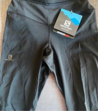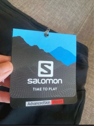 Mallas técnicas de la marca Salomon, diseñadas para ofrecer comodidad y rendimiento. - Tecnología AdvancedSkin Warm para una óptima regulación térmica. - Tejido elástico que se adapta al cuerpo. - Cintura cómoda para un ajuste seguro. - Logo de Salomon visible en la pierna.