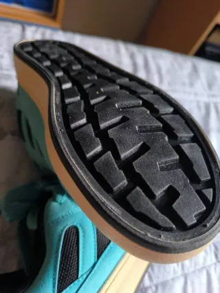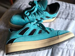 Zapatillas deportivas de color verde azulado/celeste, talla 44. Son cómodas y con un diseño moderno. me las regalaron pero yo tengo un 42,5 y su talla es 44 asique a vender se ha dicho. - Material exterior de ante. - Detalle de malla negra en los laterales. - Suela de goma resistente.