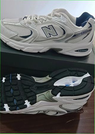 Zapatillas deportivas New Balance 530 en tonos plateados y blancos. Diseño moderno y cómodo. - Parte superior de malla transpirable. - Detalles plateados. - Cierre de cordones.