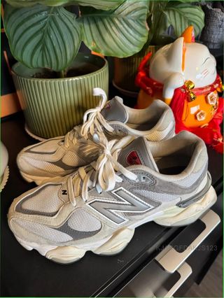 Zapatillas New Balance 9060 en tonos beige y gris. Han sido usadas muy poco. - Diseño moderno y cómodo. - Detalles en gamuza y malla. - Suela con tecnología. - Cierre con cordones.